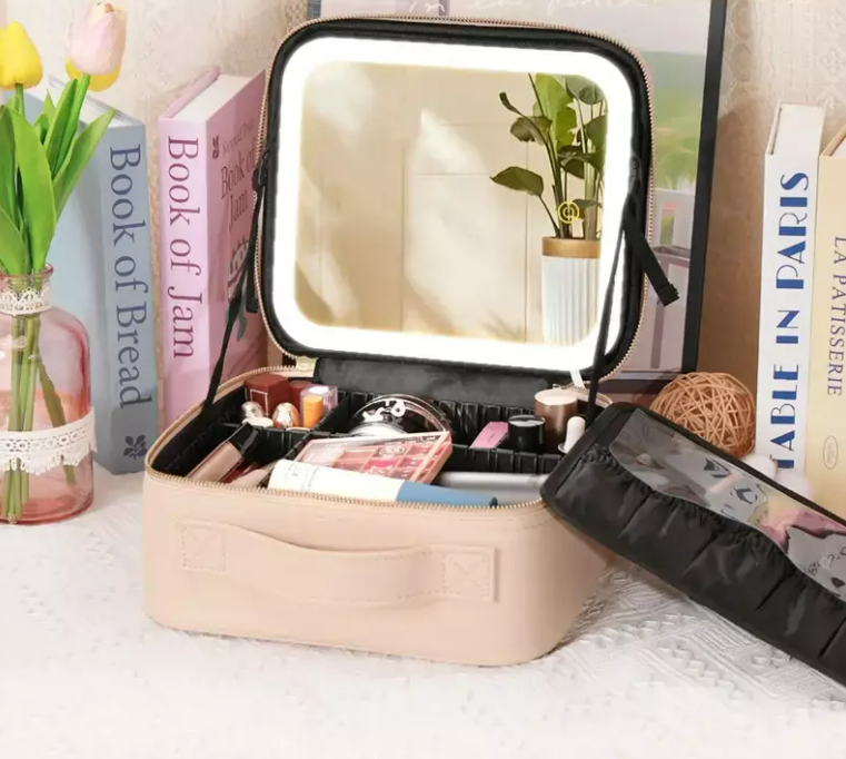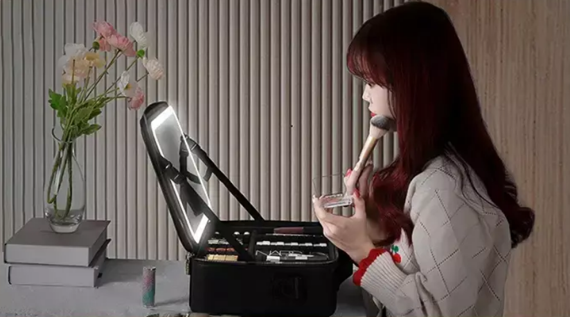 Leve sua rotina de maquiagem para outro nível com a BeautyLight Pro, a caixa de maquiagem portátil com espelho LED integrado e bateria recarregável, ideal para quem busca praticidade, sofisticação e eficiência no dia a dia ou em viagens.