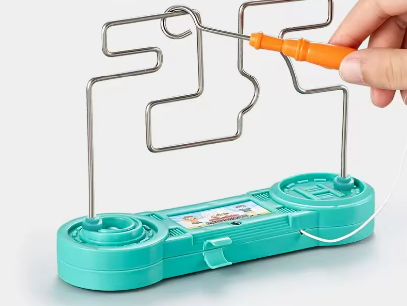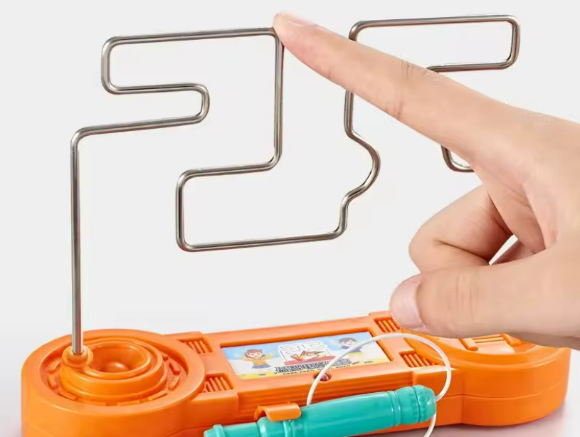 Com um design vibrante nas cores verde ou laranja, o labirinto testa a habilidade das crianças ao conduzir um bastão metálico por um caminho energizado – sem encostar nas laterais! Cada erro gera uma pequena vibração ou som, criando um ambiente de tensão divertida e aprendizado real.