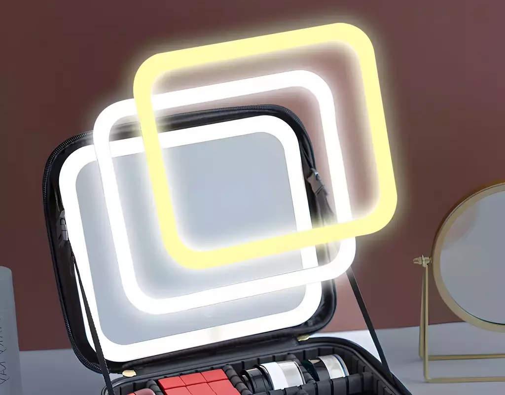 Transforme sua rotina de maquiagem com o Estojo de Maquiagem LED Lux Premium da COIBEU. Com espelho iluminado por luzes LED, design elegante e grande capacidade, ele é perfeito para manter seus cosméticos organizados e facilitar a aplicação da make em qualquer ambiente — seja em casa, em viagens ou no backstage de um evento.