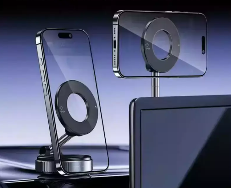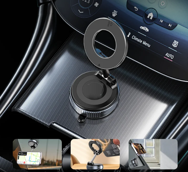 O Mag360 Flex é um suporte magnético de última geração, projetado com 16 ímãs superpotentes e tecnologia de sucção a vácuo dupla-face para garantir fixação impecável no painel, vidro ou qualquer superfície plana. Ele se adapta facilmente a qualquer ângulo com sua rotação 360º, proporcionando uma visualização personalizada e facilitando o uso de GPS, chamadas e música sem precisar tirar as mãos do volante.
